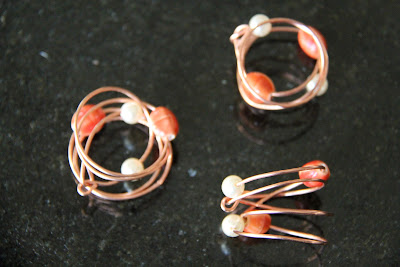 For extra class, I made a set of napkin rings. I used copper wire left over from this, orange beads, and faux-pearls.